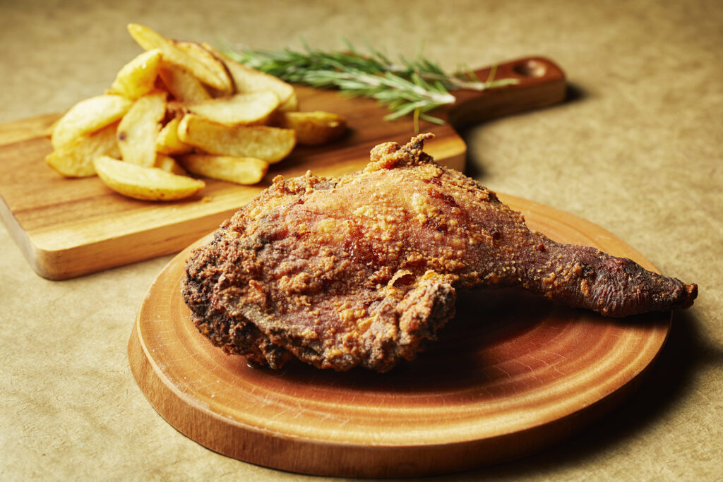 12/18~12/25限定【クリスマスディナー】 鶏もも1本揚げやポタージュなど冬らしい特別メニューに スパークリングワインを含む飲み放題付き! 熱々のチキンとともに、クリスマス気分が盛り上がるコースをぜひお楽しみください。